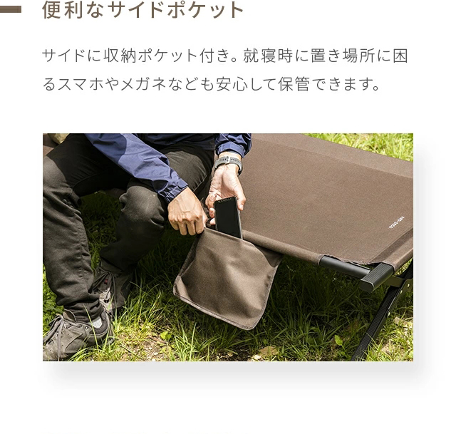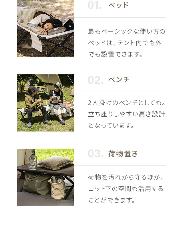 【3ヵ月保証】 コット ワイド キャンプ 190×66cm 耐荷重180kg アウトドアベンチ ベンチ アウトドア キャンピングベッド ベッド 2人用 2人掛け アウトドアコット 折り畳み ローコット 簡易ベッド 収納バッグ
