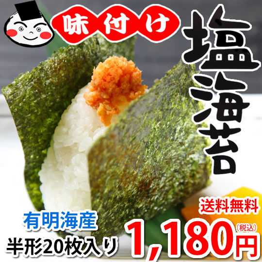 塩のり 海苔 味付け塩海苔 有明海産 送料無料 半形20枚 お取り寄せ お取り寄せグルメ 有明のり 焼きのり 熊本 天草 ご飯のお供 おにぎり 乾物 乾海苔 のり