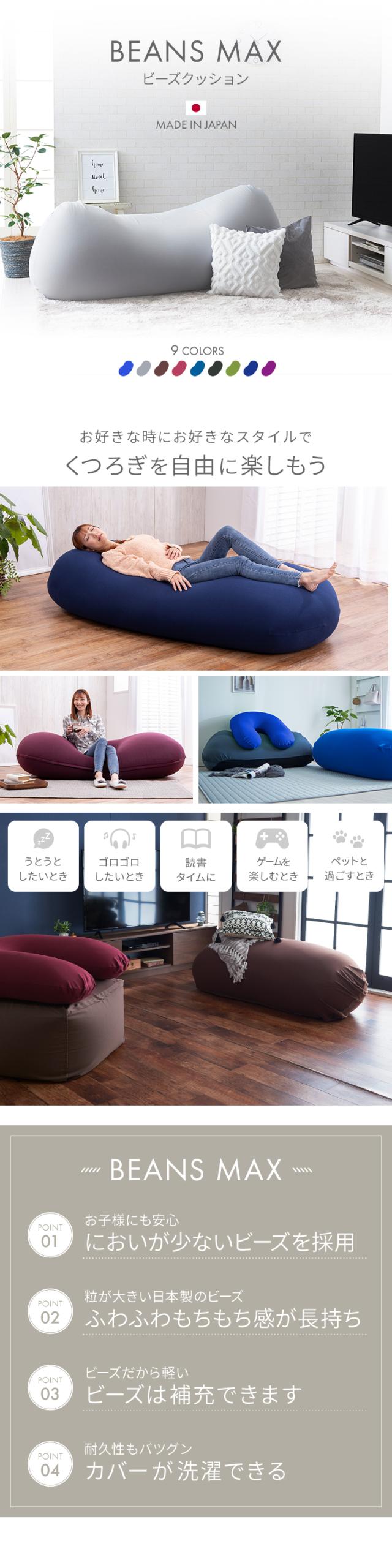 ソファーベッド ビーズクッション 特大 ビーンズMAX ビーズ クッション もちもち ビーンズマックス カバー洗濯可 ブルー グレー ブラウン ワインレッド ダークブルー ダークグレー フォレストグリーン ネイビー ディープパープル 新生活 インテリア