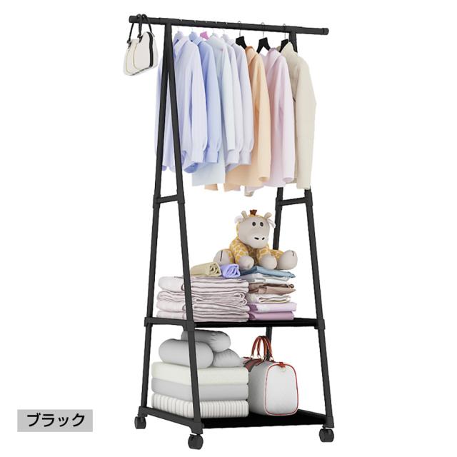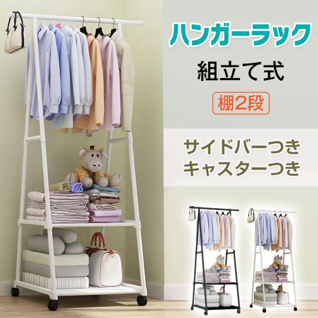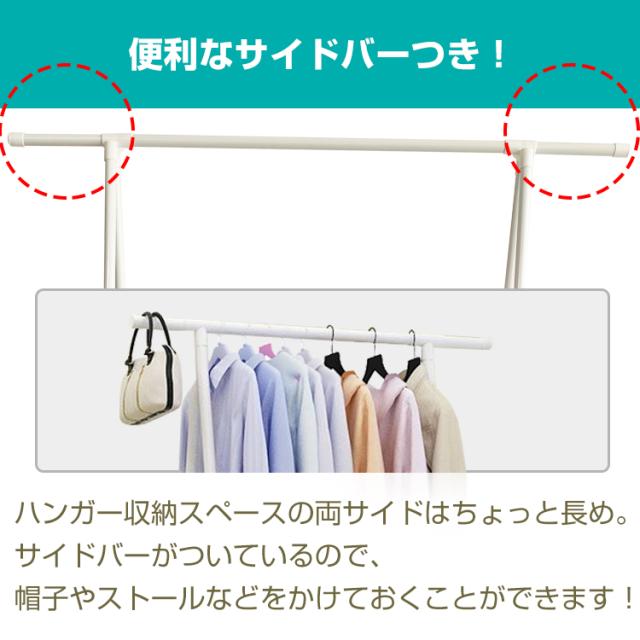 新生活 ハンガーラック サイドバーつき キャスターつき 組立式 シンプル スリム 収納棚 省スペース おしゃれ 収納家具 洋服かけ ny276