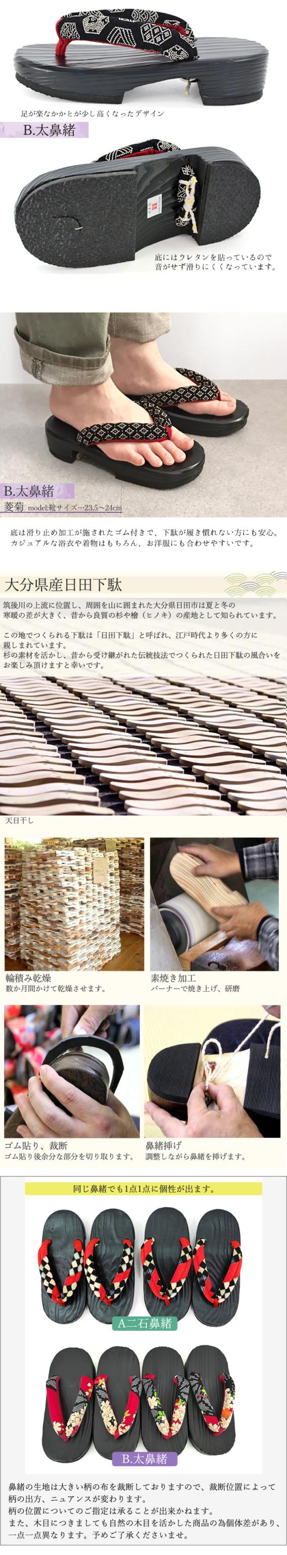■素材:[台]大分県産日田杉、[鼻緒]ポリエステルちりめん[底]EVA