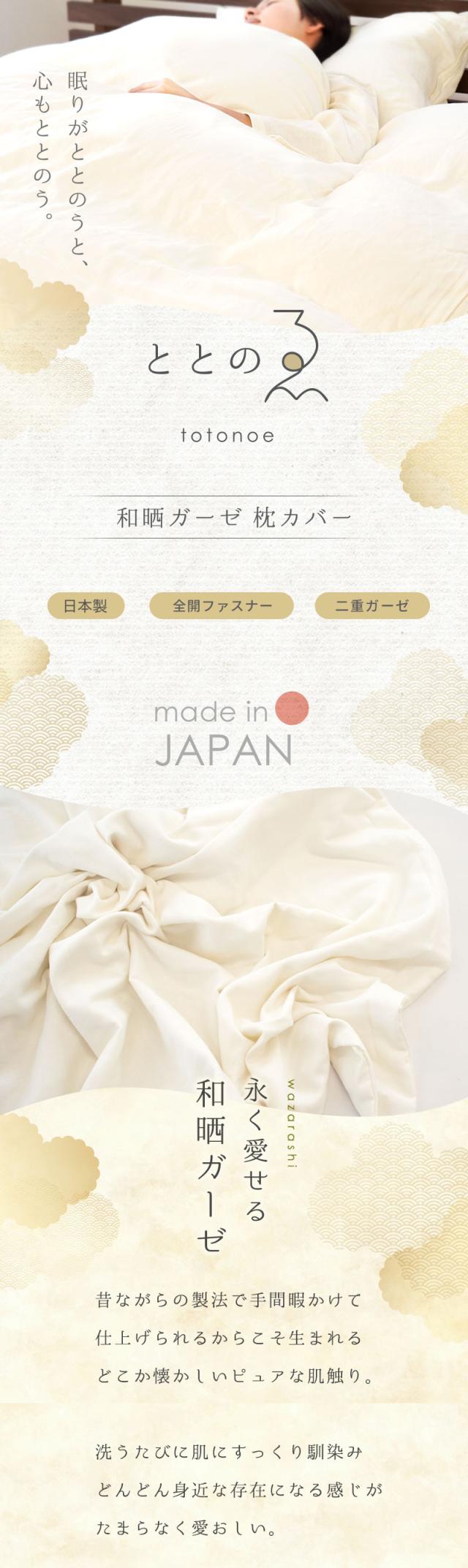 ととのゑ 国産 枕カバー 和晒し 2重ガーゼ まくらカバー ピロケース 43×63cm用 日本製 和晒 わざらし 昔ながら 昔懐かし