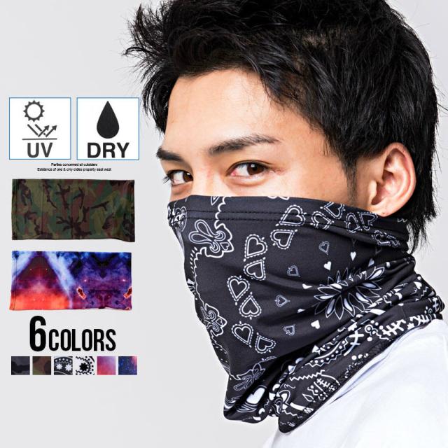 セール SALE ネックウォーマー メンズ CavariA キャバリア ポリストレッチネックウォーマー 即日発送 返品・交換対象外 マスク フェイスカバー UVカット ドライ 薄手 総柄 ユニセックス 男女兼用 カモフラージュ 迷彩 ペイズリー タイダイ [CATN20-35]