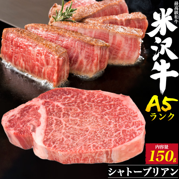 肉 ギフト A5 米沢牛 シャトーブリアンステーキ 150g ×1枚 ブランド牛 A5ランク 米沢牛国産 黒毛和牛 牛肉 お肉 和牛 米澤牛 厚切り ステーキ用肉霜降り にく 霜降り肉 山形県産 記念日 ご褒美 誕生日 希少部位 1人前 2025年 お歳暮 ギフト 熨斗対応 送料無料