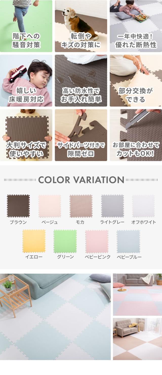 インテリアに合わせやすく、手軽に模様替えも楽しめるジョイントマット。