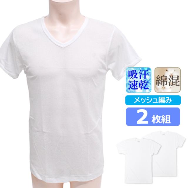 新栄 DRYメッシュ 吸汗速乾 半袖V首 2枚組 送料無料