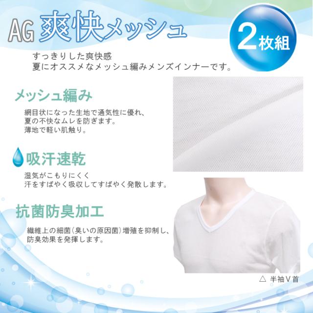 メンズ インナー 新栄 DRYメッシュ 13-022 半袖V首 2枚組 送料無料 爽快メッシュ 吸汗速乾 抗菌防臭加工 綿混 vネック 半袖 紳士 肌着 シャツ(03825)