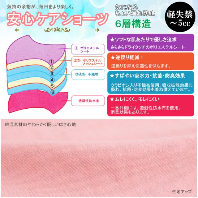 安心ケアショーツ【軽失禁対応 吸水パット付き】