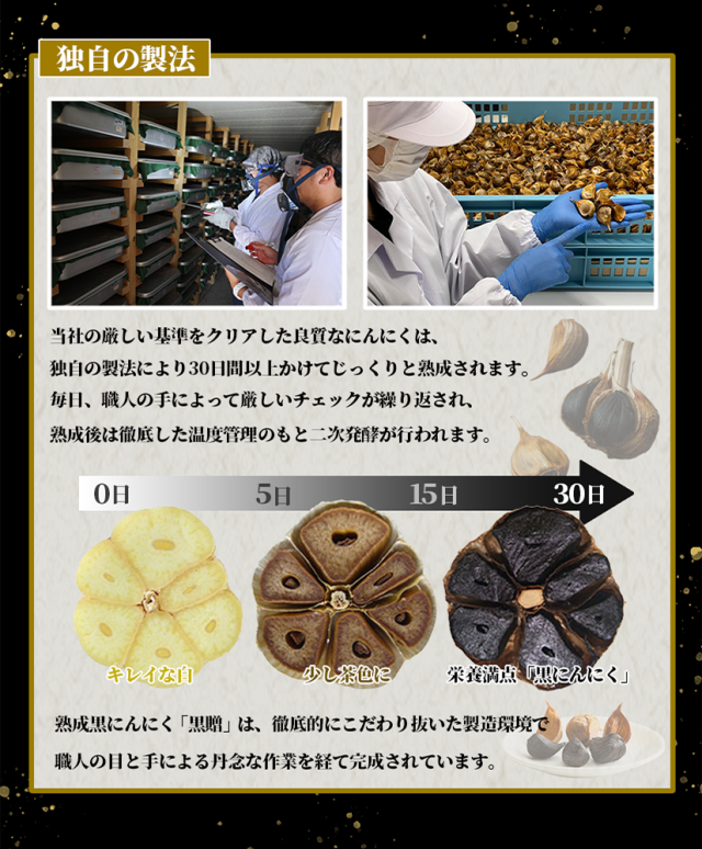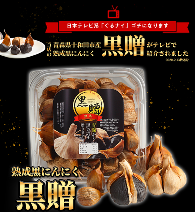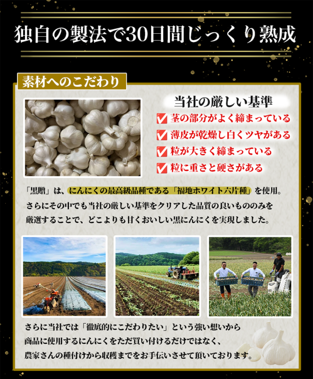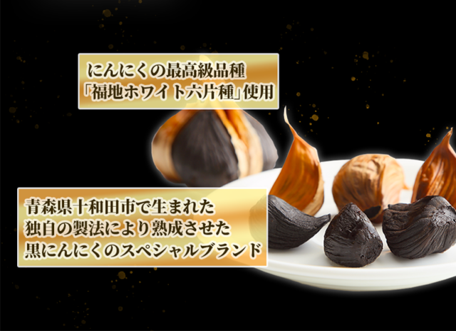日本トップのにんにく生産量を誇るここ十和田市から 高級品種の青森県産「福地ホワイト六片種」を熟成した 黒にんにくをお贈りいたします。