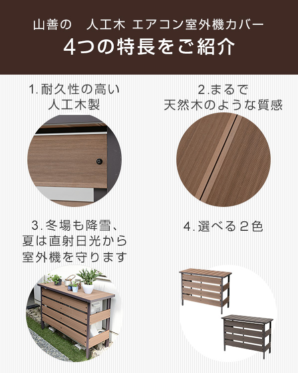エアコン室外機カバー 人工木 MWAC-100 エアコンカバー 日よけカバー 室外機ラック エアコンラック おしゃれ 収納 エクステリア DIY 山善 YAMAZEN 【送料無料】