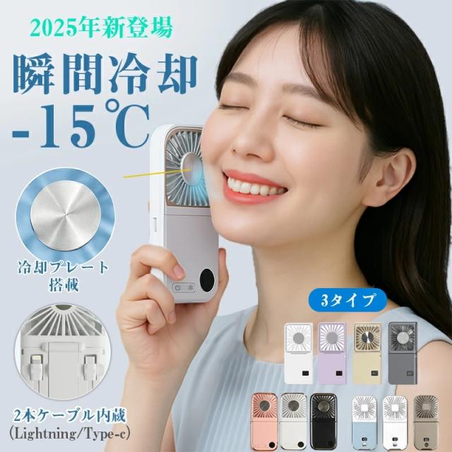 【7WAY最新進化版★冷却プレート搭載&ケーブル2本内蔵】ハンディファン 瞬間冷却 -15℃ 手持ち 扇風機 首かけ扇風機 卓上扇風機 7Way 携帯 扇風機 ミニ 扇風機 軽量 静音 多機能 3000mAh モバイルバッテリー スマホスタンド