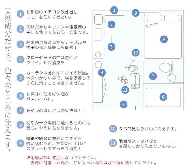 【使用上の注意】用途以外に使用しないでください。子供、認知症の方などの誤飲を防ぐ為、置き場所にご注意下さい。直接人体や、生き物に使用しないでください。シミの心配のあるものは、あらかじめ目立たないところで試してください。皮膚に付着した場合、口に入った場合は水で洗い流してください。