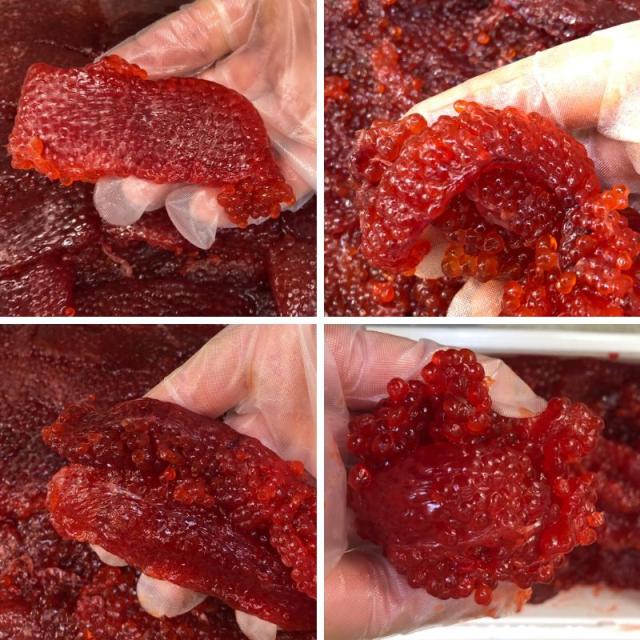 訳あり切れ子です。天然紅鮭の筋子、小粒な筋子になります。