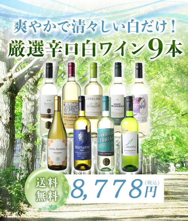 【送料無料】 第37弾 爽やかで清々しい白だけ! 厳選 辛口 白ワイン 9本セット スッキリ 清涼感 イタリア オーストラリア フランス チリ スペイン