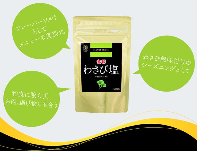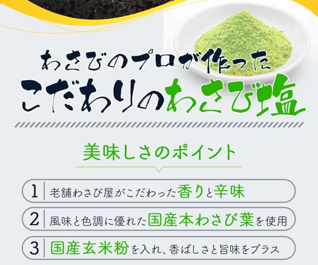 わさび塩 100g メール便送料無料 金印 本わさび 本ワサビ 本山葵 シオ しお 塩 わさび ワサビ 山葵 DM便配送 BBQ 1,000円 ポッキリ ポイント消化
