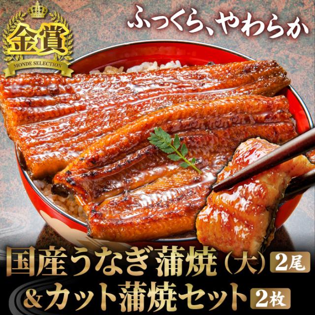 国産うなぎ 長蒲焼(大)2尾&カット蒲焼2枚セット 3〜6人前 お歳暮 プレゼント ギフト うなぎ 蒲焼き 国産 お祝い 贈り物 内祝い 送料無料