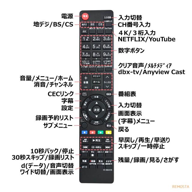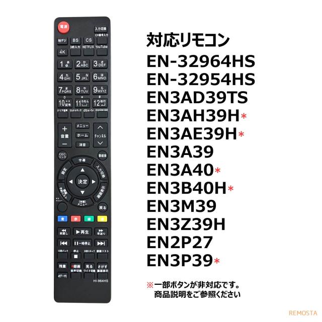 ハイセンス テレビ リモコン EN3AD39TS EN-32964HS EN-32954HS EN3A39 EN3M39 EN2P27 EN3Z39H EN3P39 EN3AH39H EN3B40H EN3AE39H EN3A40 Hisense 液晶テレビ リモスタ 代用リモコン