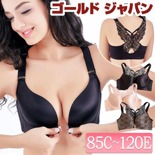 秋新作 大きいサイズ レディース 下着 ブラジャー バックレースフロントホックノンワイヤーブラジャー ブラ ノンワイヤー 脇高 谷間 レース リボン ワイヤー 夏服 春服 C95 D95 C100 D100 C105 D105 C110 D110 C120 D120 ベージュ ブラック 黒 ヒョウ柄 ゴールドジャパン
