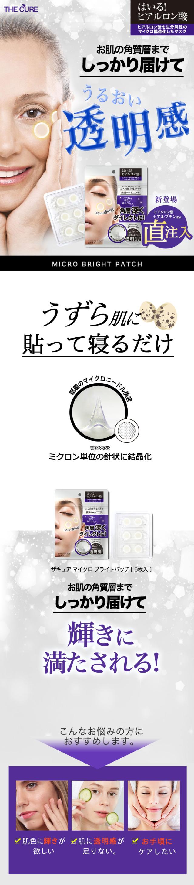 マイクロニードル 大人の肌色集中ケア 6シート入 【メール便】 ザキュア マイクロブライトパッチ 目元に輝きを 目の下 アルブチン 角層までダイレクトに ヒアルロン酸 直注入 《ヒアルロン酸を生分解性マイクロ構造体に固めたシート状美容液》針状 パッチ