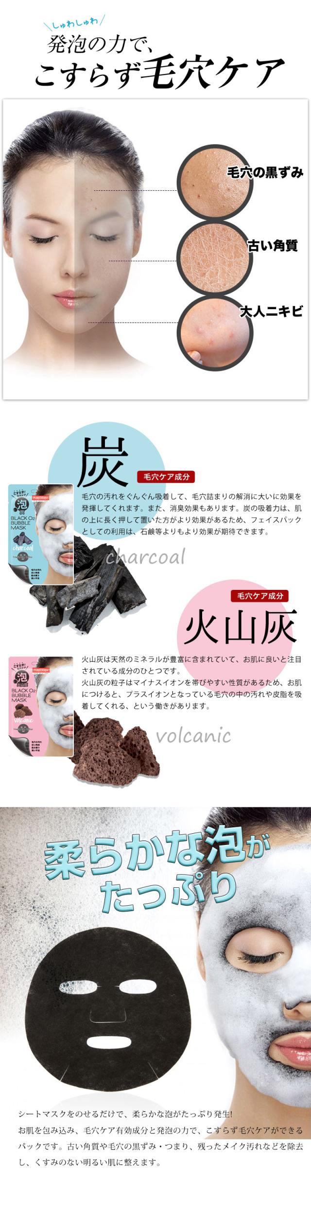 ブラック炭酸マスク【 2種類:炭/火山灰 】5枚セット