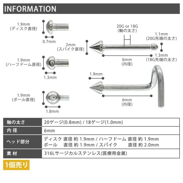 シャフトがスクリュー・ストレートタイプからお好みの形状をご選択できます。一つは持っていたい先端がシンプルな鼻ピアスです。 キャッチやネジが無いので、取り扱いも簡単。太さは20G・18Gの2サイズからお選びいただけます。アレルギーが起きにくいサージカル(医療用)素材なので安心です。もちろんファーストピアスにも使用できます。