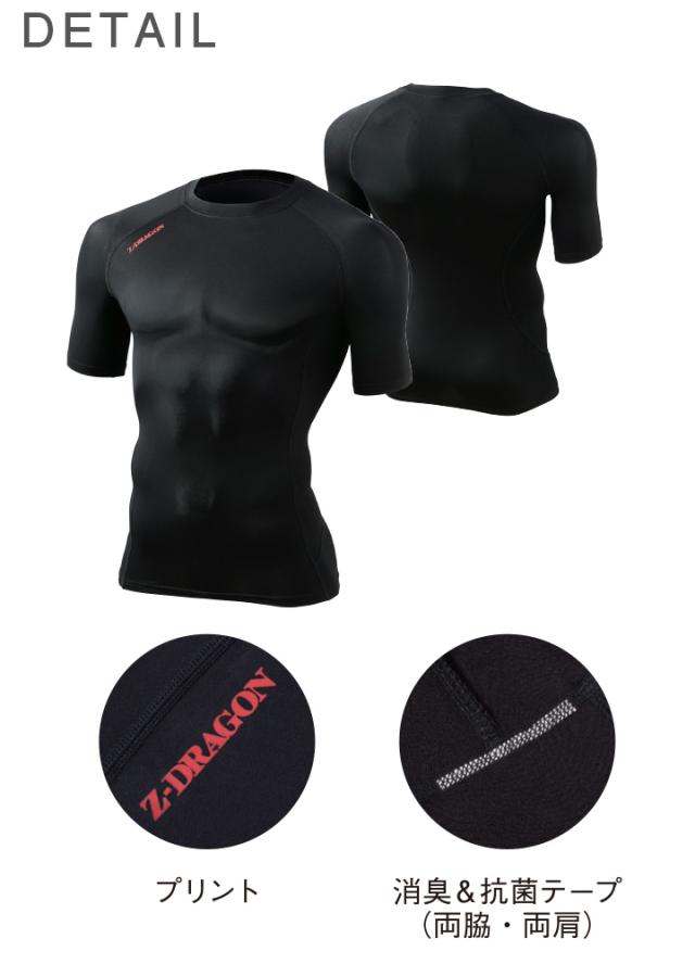 【即日発送】インナーシャツ 吸汗速乾 半袖 ショートスリーブ Z-DRAGON 75134 夏用 コンプレッション ストレッチ 接触冷感 消臭 抗菌 カモフラ スポーツ 作業着 作業服 自重堂