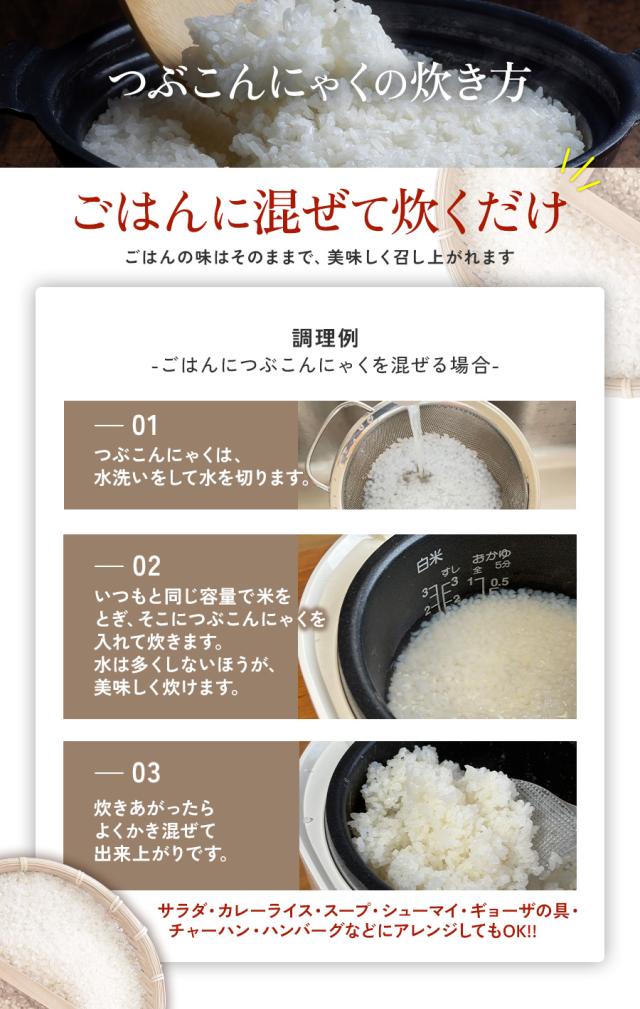 - 白米で食べましたが普通に美味しかったです。 言われなければこんにゃくが混ざってるのわからないくらい。 米の価格が高騰してるので助かります。 カロリーも抑えれてダブルで嬉しいです。 また購入したいと思っ...