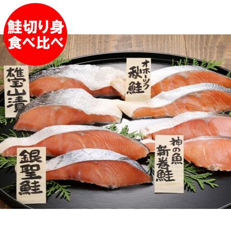 鮭 切り身 北海道 鮭 食べ比べ セット 北海道産 雄宝山漬 鮭 / 神の魚 新巻鮭 / 銀聖 鮭 / オホーツク 新巻鮭 鮭 切身 1個 箱入り しゃけ / さけ 魚介類 シーフード サケ