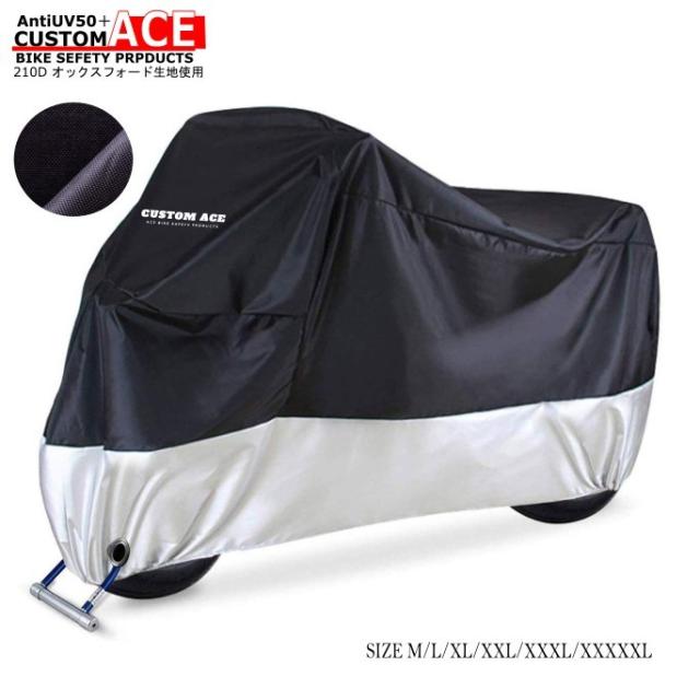 《CUSTOM ACE》【厚手】【210Dオックスフォード】【オリジナル】 シルバーブラック ツートン メーカー保証付き バイクカバー レインカバー 防水カバー 防盗 UVカット 原付 スクーター 飛ばない 丈夫 鍵穴付き