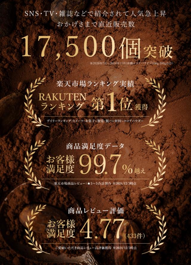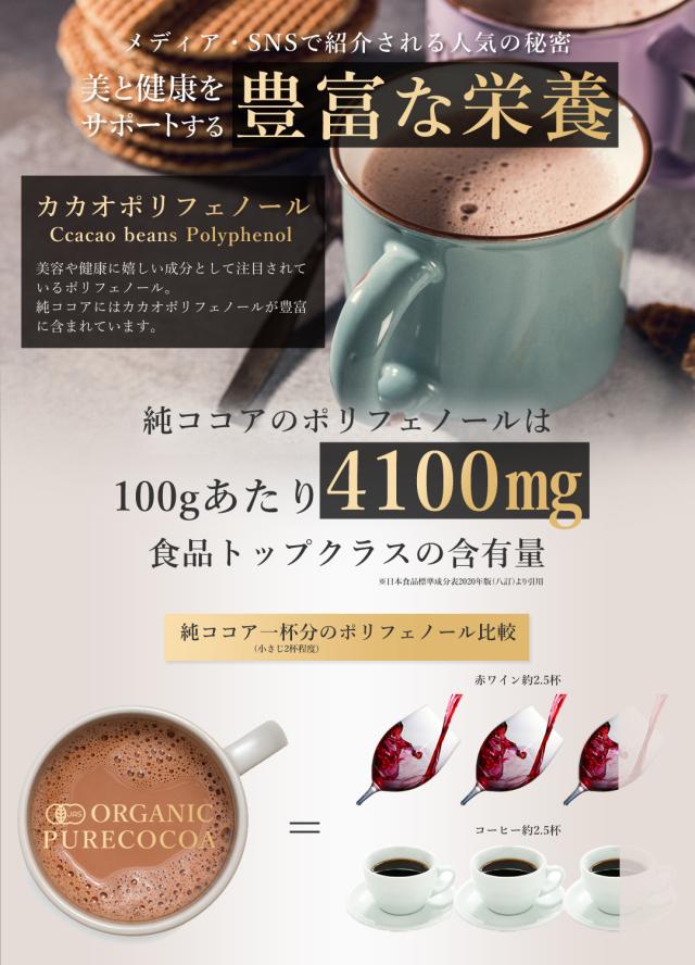 【有機カカオ豆から生まれた有機ピュアココア100%!!】