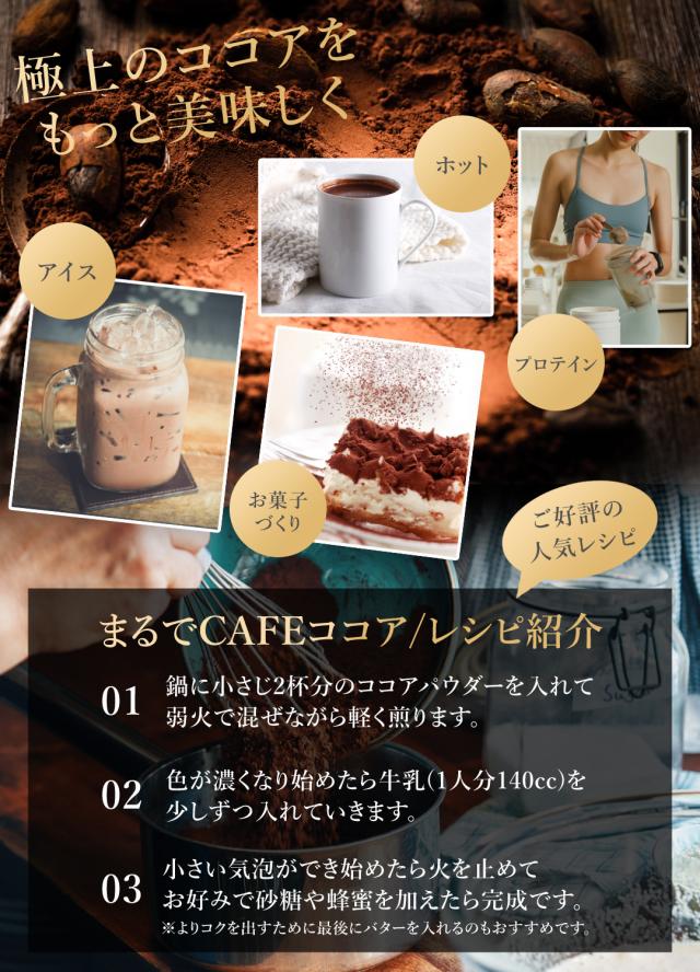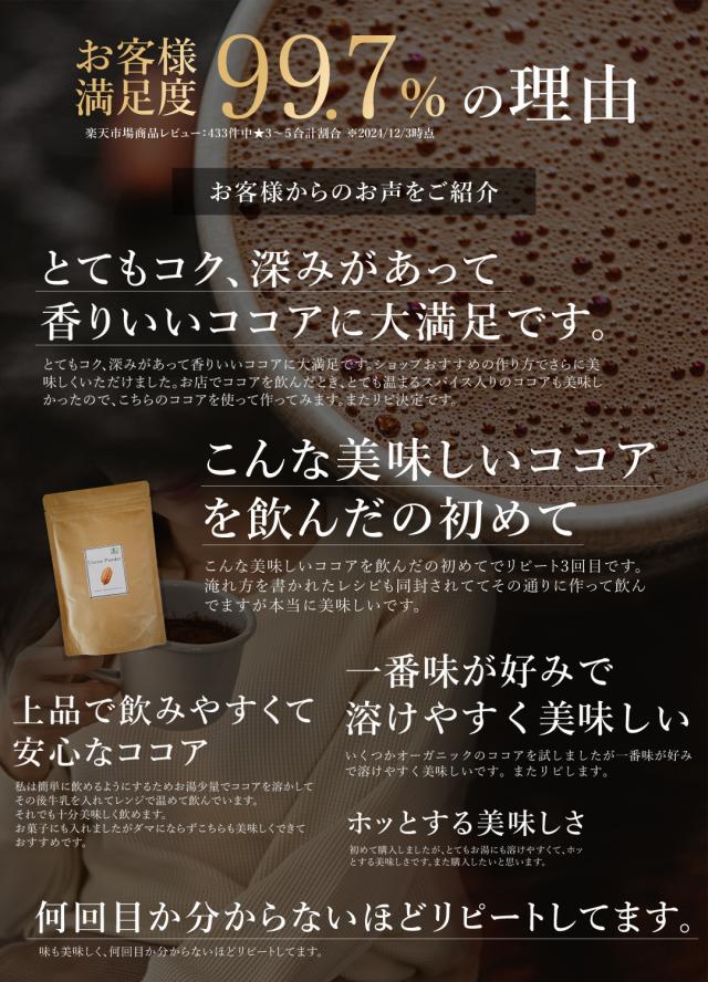 - 美味しいココアです毎日夕方に飲んでいます、身体も温たまりこの季節に丁度良いです。購入して良かったです。