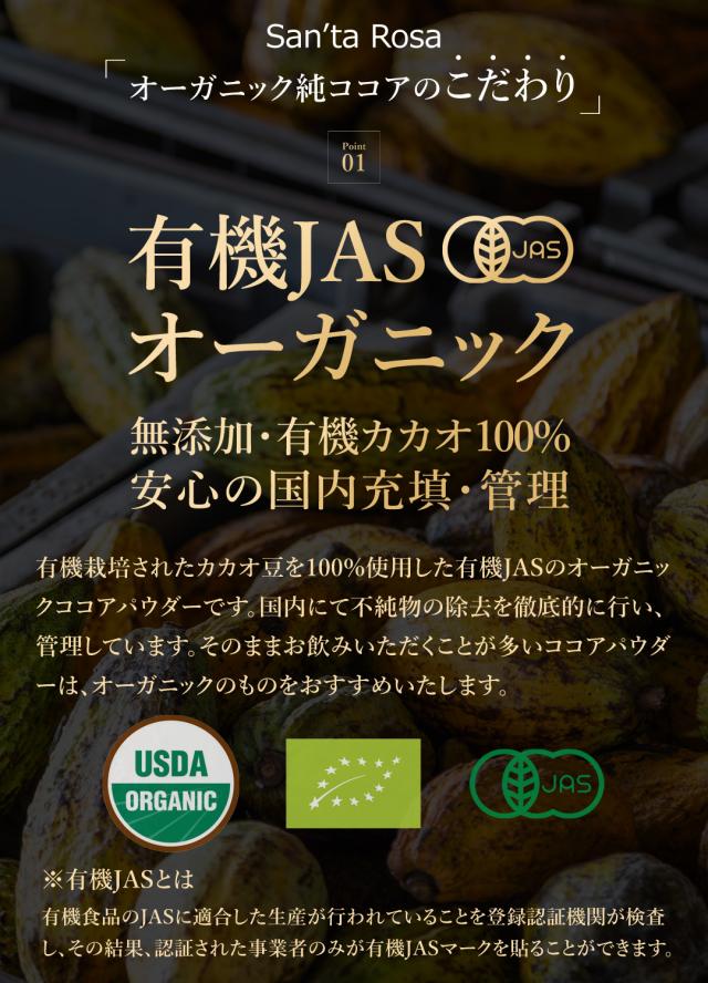 ココアパウダー 純ココア 100g ココア オーガニック ピュアココア カカオ 有機JAS 無糖 無添加 非アルカリ処理 無香料 無薬品処理 砂糖不使用 製菓 スーパーフード グルテンフリー ヴィーガン 非遺伝子組み換え 送料無料 サンタローサ