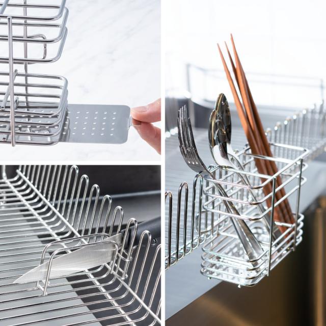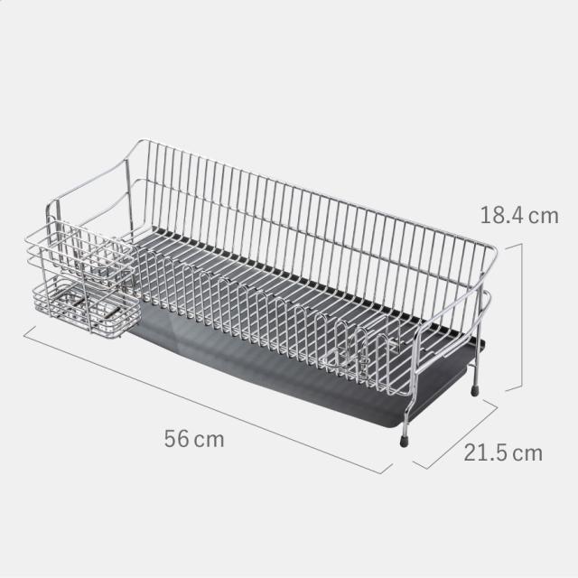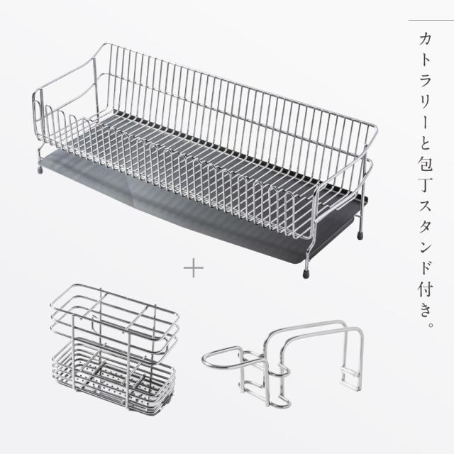 燕三条 水切りラック 全長56m 22cm / 幅21.5cm 高さ18.4cm 水切りかご 水切りラック ステンレス スリム シンク上 シンク横 箸立て 包丁スタンド 付き ステンレス製 大容量 コンパクト シンク かご カゴ 水切りトレー 水切りトレイ トレー 縦置き 水が流れる シンクに渡せる