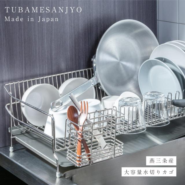 こだわりが詰まった、Made in 燕三条の大容量ステンレス水切りかご。 水切りのしやすさを追求したデザイン。
