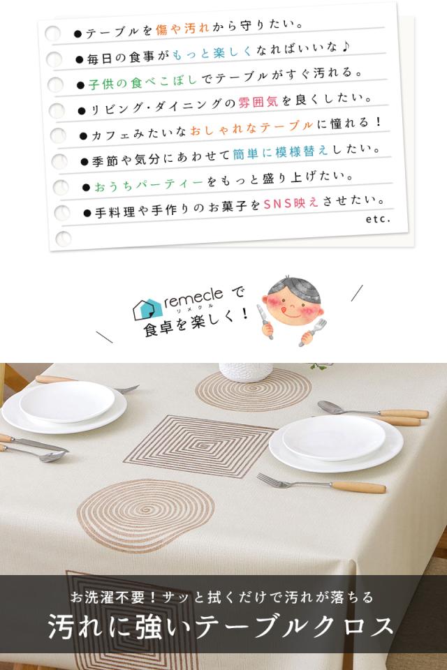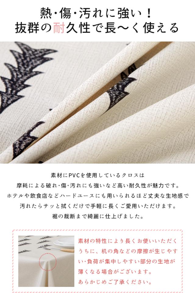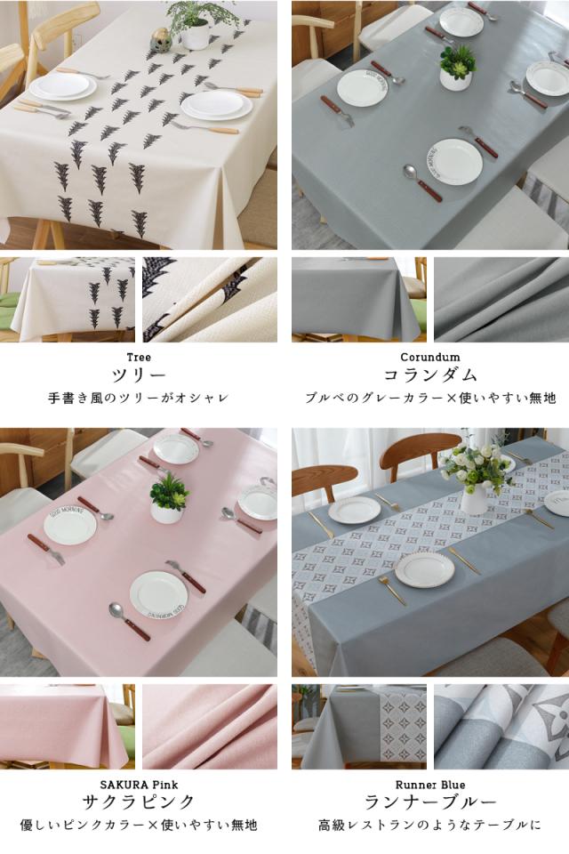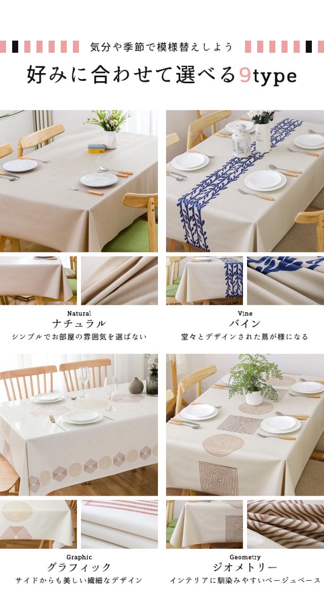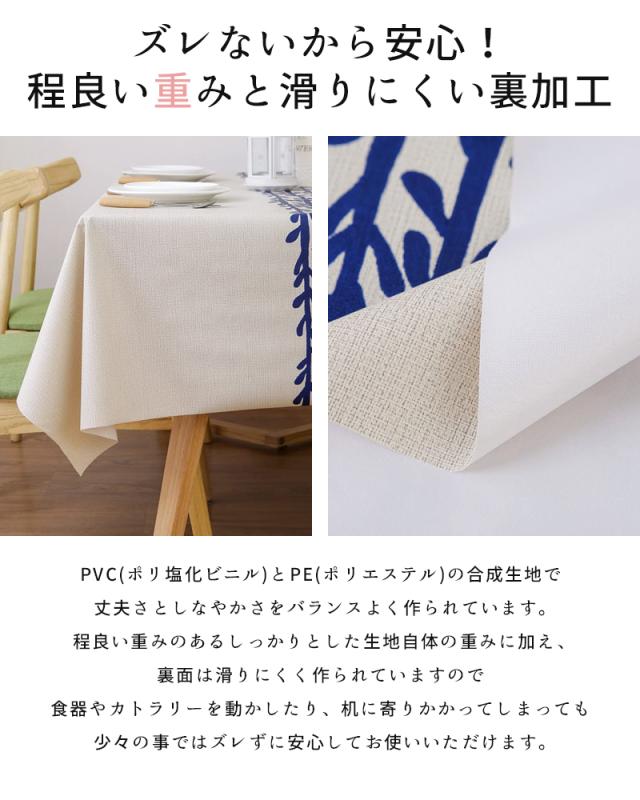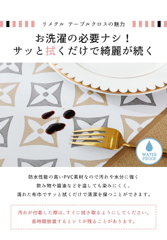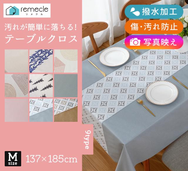 テーブルクロス Mサイズ ビニール おしゃれ 【meru】 pvc 北欧 撥水 高級感 花柄 無地 汚れ防止 シンプル モノトーン リビング ダイニング 137cm×185cm