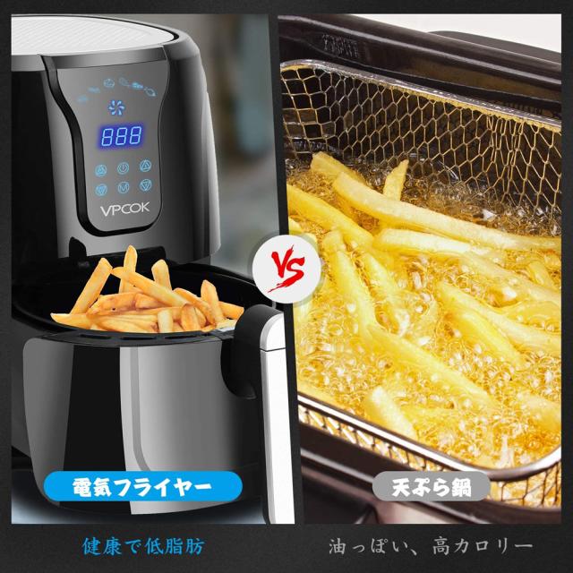 ノンフライヤー 2.6L 大容量 家庭用 電気フライヤー 揚げ物 油無し お手入れ簡単 スマートディスプレイ タッチパネル 高速空気対流技術 過熱保護 引っ越し祝い 結婚祝い