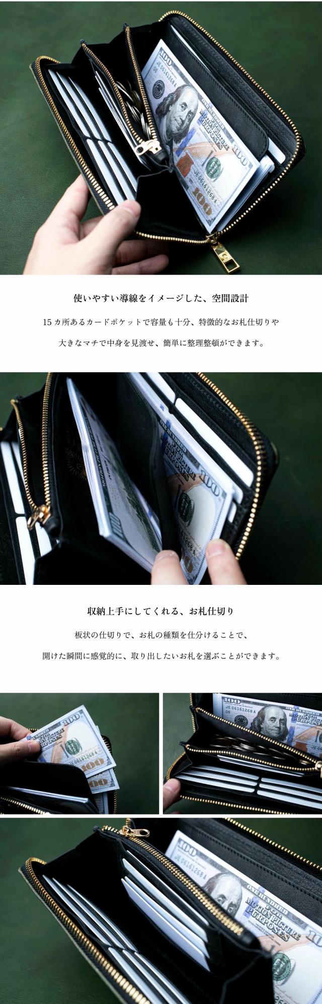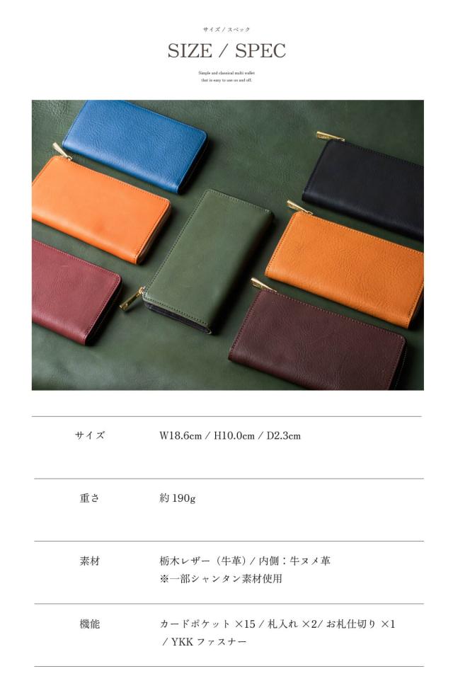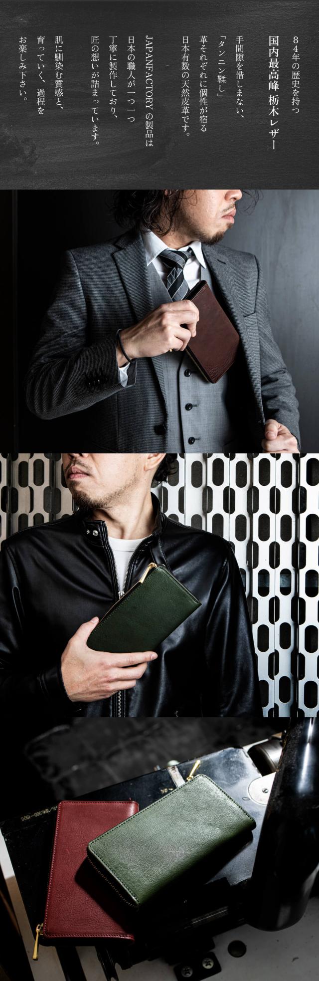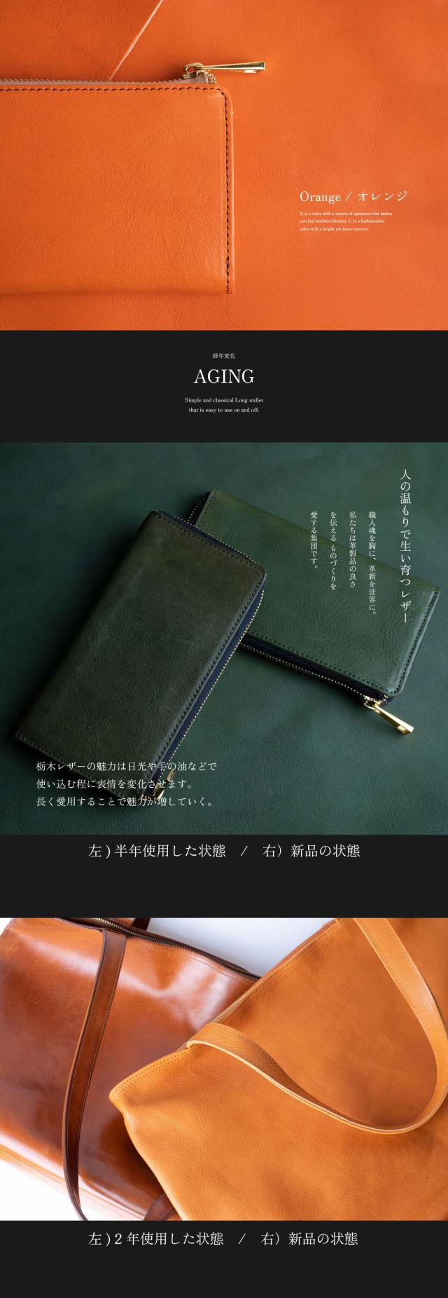 スムーズな支払い導線とたくさん収納しても整理しやすい配置が特徴です。開けた瞬間に取り出せる「仕切り」でキレイに収納ができ、千円札と一万円札、お札と領収書などを瞬時に仕分けることができるので使い勝手抜群です。しなやかで堅牢、そして年月を重ねるごとに味わい深く変化していく栃木レザーは、世界中で評価されています。日本一の品質を誇るレザーを製造するタンナーこそが、この栃木レザーです。天然皮革の豊かな表情はそれぞれが持つ個性です。1点1点の風合いをお楽しみ下さい。