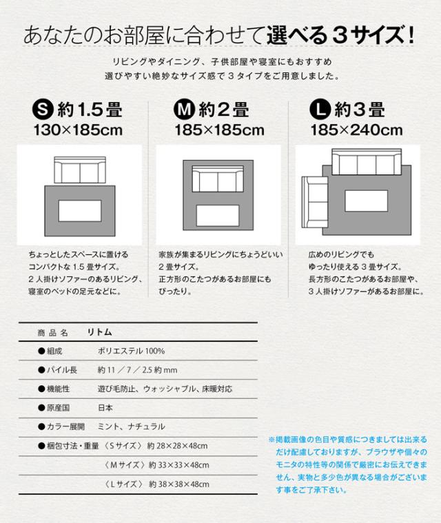 ラグ 【今治タオルプレゼント】 リトム 185×185cm ラグマット オールシーズン 洗える おしゃれ 北欧 2畳 日本製 床暖房 ホットカーペット 対応 丸洗いOK コンパクト 軽量 遊び毛が少ない お手入れ 掃除機 楽 簡単 rytme スミノエ 正方形 P5倍