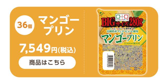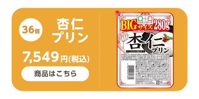 名称 |カスタード風プリン 原材料名 |果糖ぶどう糖液糖(国内製造)、製菓材料、クリーミングパウダー、こんにゃく粉/ゲル化剤(加工澱粉、増粘多糖類)、グリシン、pH調整剤、甘味料(スクラロース、アセスルファムK)、カラメル色素、香料、カロテノイド色素、(一部に乳成分・大豆を含む) 栄養成分 |【100gあたり】エネルギー:60Kcal、たんぱく質:0.5g、脂質:0.8g、炭水化物:12.8g(糖質:12.5g、食物繊維:0.3g)、食塩相当量:0.03g 内容量 |240g ×36個 賞味期限 |製造日より120日(お届けする商品は、賞味期間の約30%以上が目安となります) 保存方法 |直射日光、高温の場所を避けて保存してください 製造者 |株式会社ヨコオデイリーフーズ |