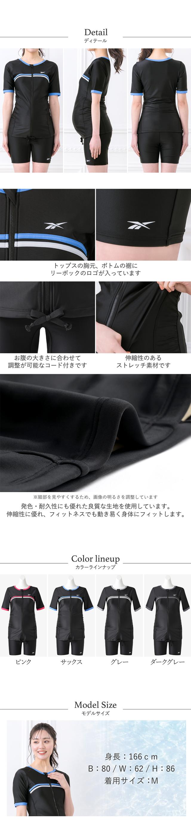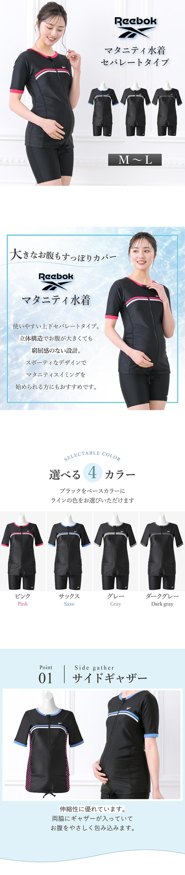マタニティ 水着 Reebok セパレート スイミング フィットネス パッド付 リーボック 半袖 トップス パンツ 2点セット レディース スイムウェア マタニティビクス プール 水泳 ママ ハイウエスト 妊婦 母親 大きいサイズ 黒 グレー 317907