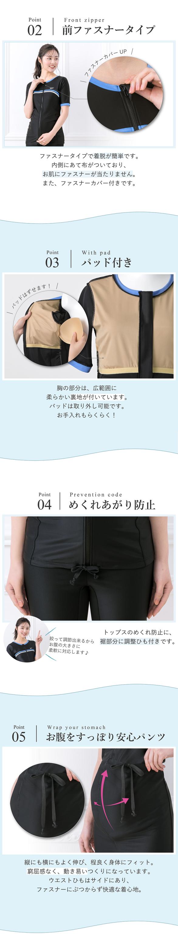 | ママに優しい機能がたっぷりのマタニティ水着。 トップスとボトムに分かれたセパレートタイプです。 前開きになっているトップス。ファスナータイプになっており、 ファスナーがお肌に当たらないよう、内部にあて布がついています。 胸部分は広範囲に裏地とパッドがついており、安心の着心地。 また、めくれあがり防止のため、裾にコードがついています。 立体構造のボトムは、大きなお腹もすっぽり包み込み窮屈感のない設計。 ウエストひもは、サイドで結ぶタイプでファスナーに当たらないのも嬉しいポイント。 下腹部から腰にかけて3重仕立てのメッシュ裏地。 腰後ろは2重仕立てとなっていて、お腹をやさしくサポートします。 インナー一体型なので、水の中でのストレスを軽減します。 イギリス発祥のスポーツブランド・リーボック【Reebok】のライセンス水着です。 | |
