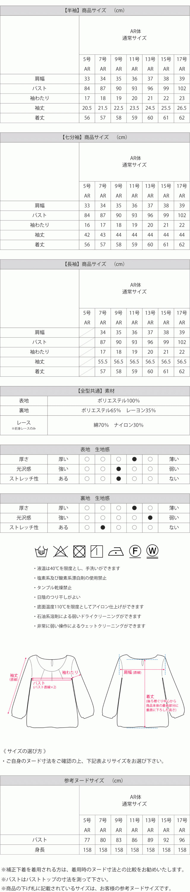 | 半袖 七分袖 長袖 無地 レース 涙開き 袖裏あり 裏地付き | |