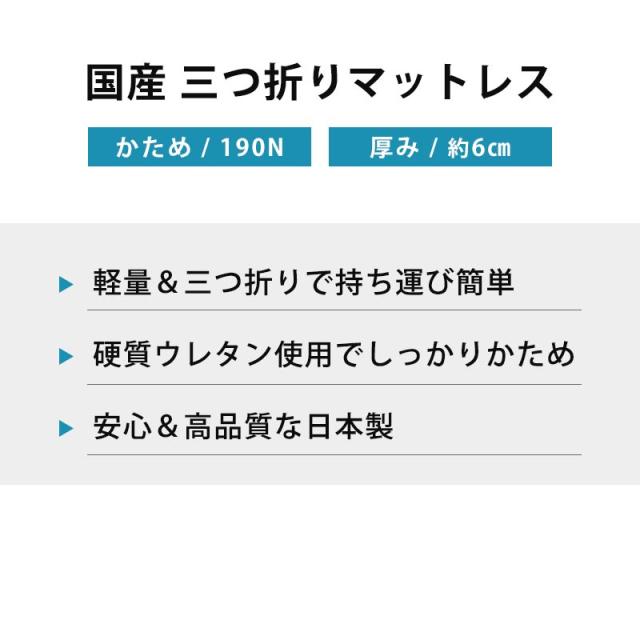 マットレス シングル 三つ折り 91×192cm 厚さ約6cm 日本製 硬質 190ニュートン 車中泊