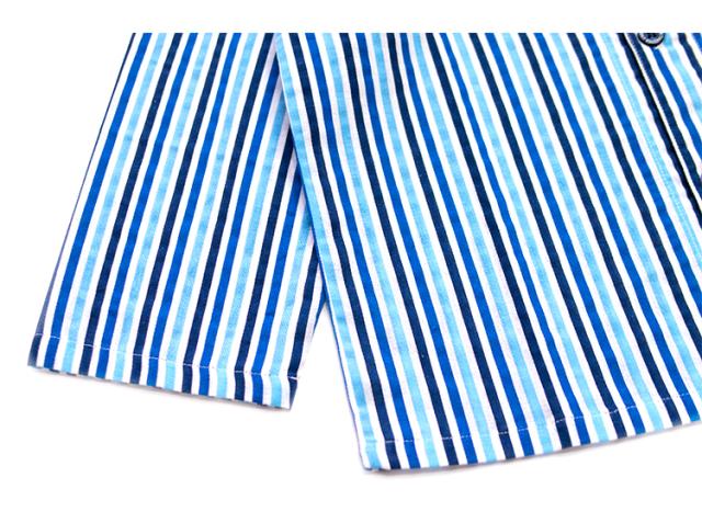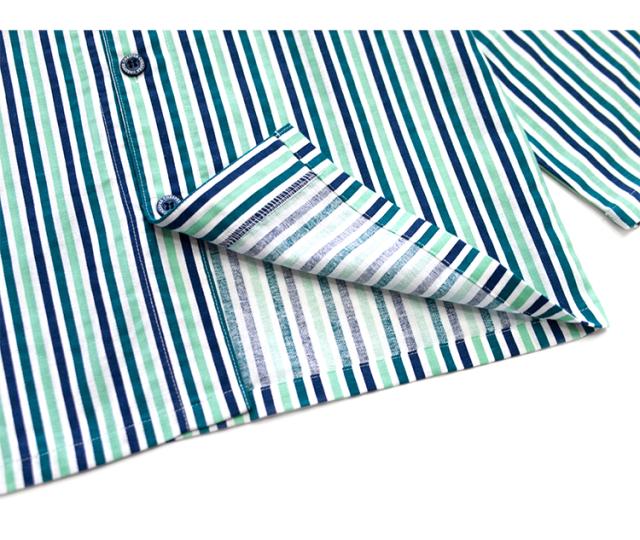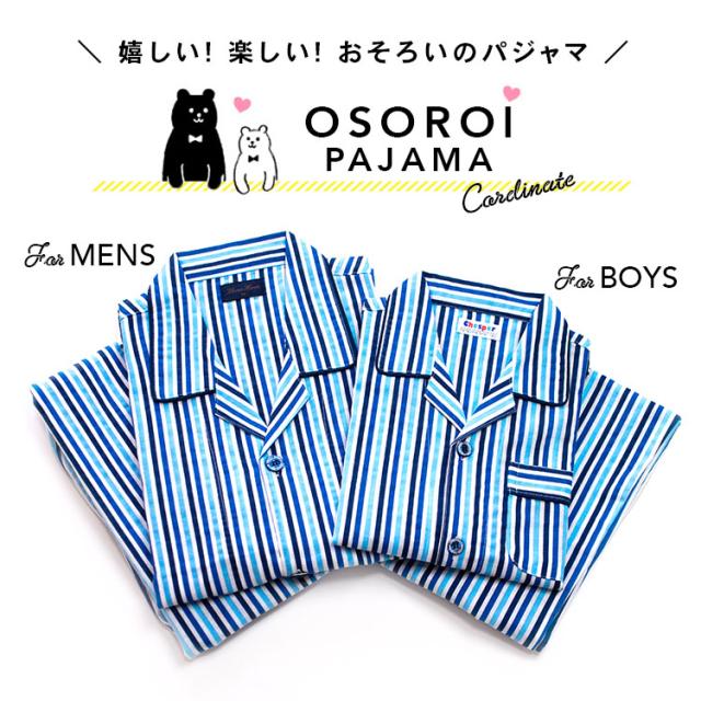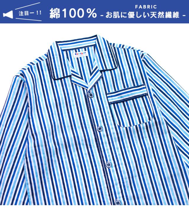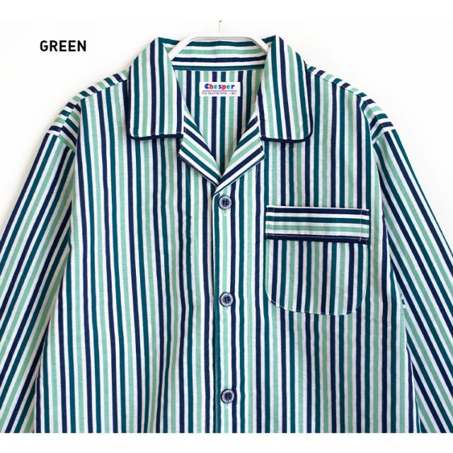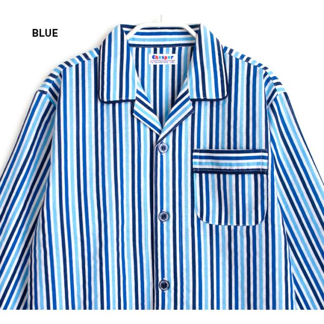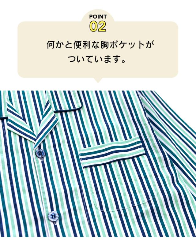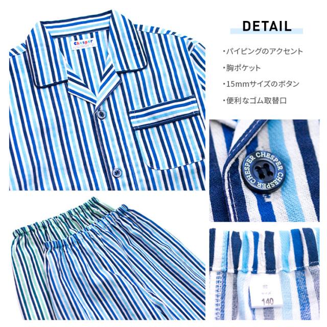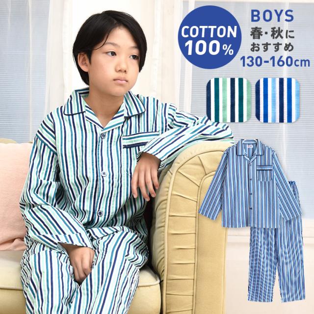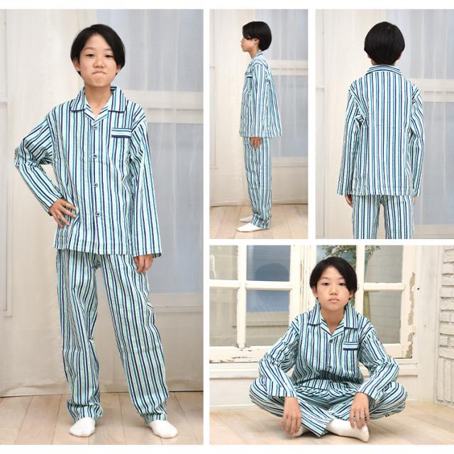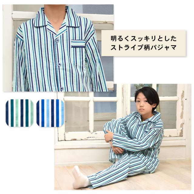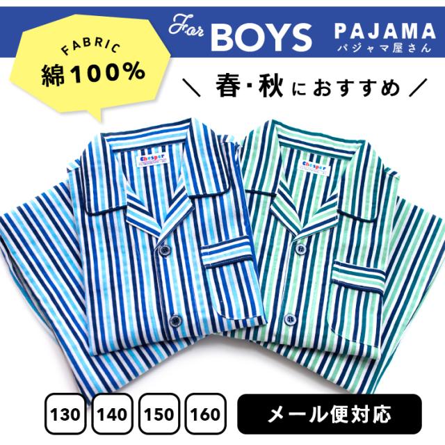 パジャマ キッズ 男の子 綿100% 長袖 春 秋 前開き ボタン ストライプ柄 ブルー グリーン 130 140 150 160 子供 ジュニア ボーイズ おそろい メール便なら 送料無料