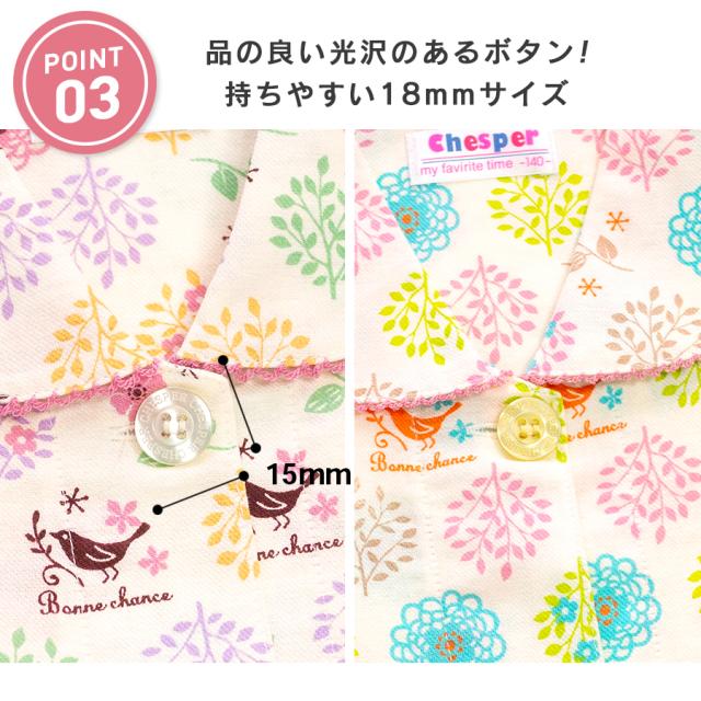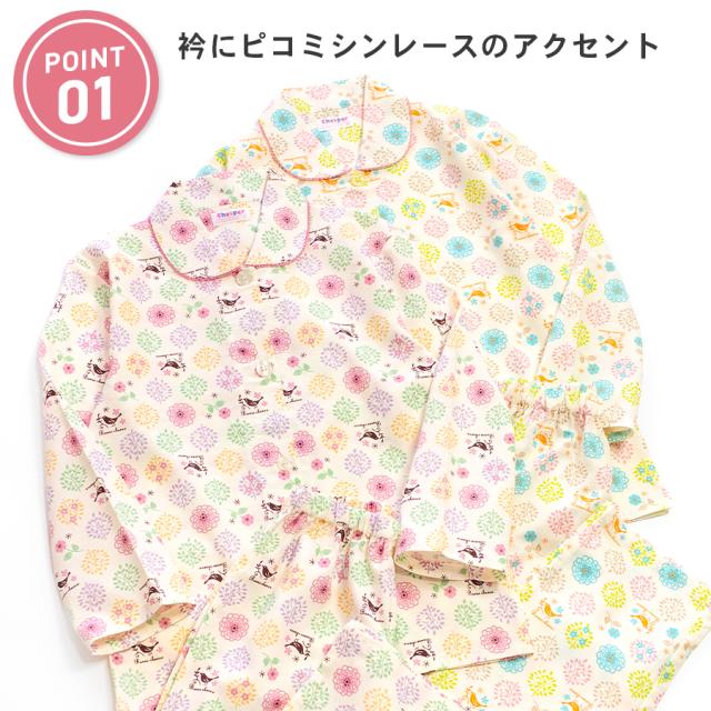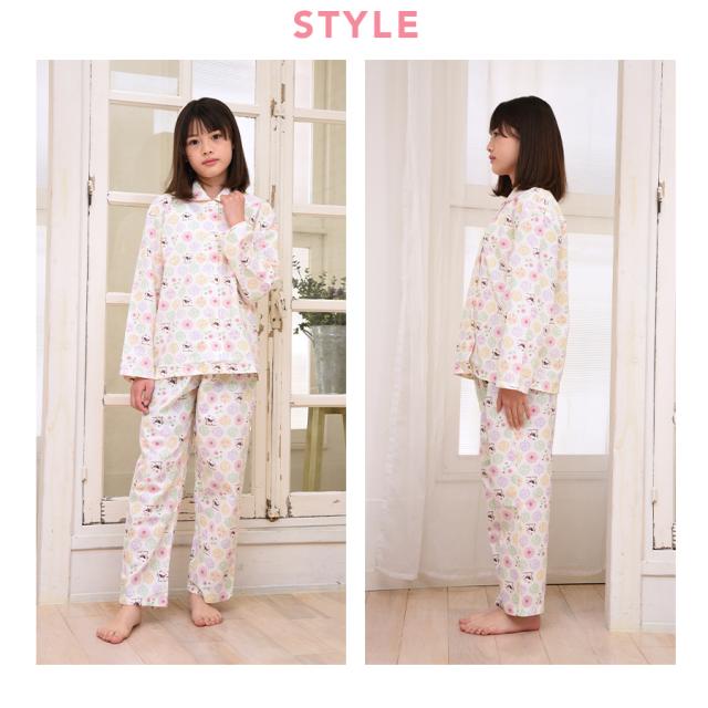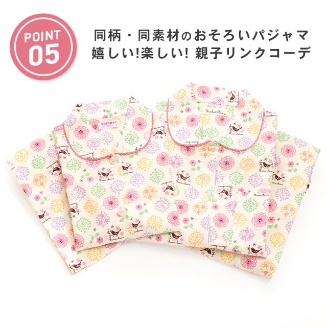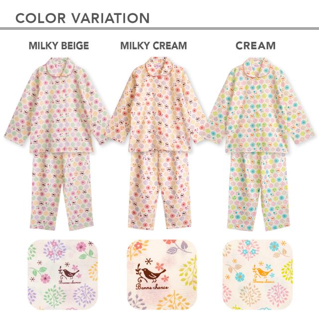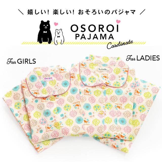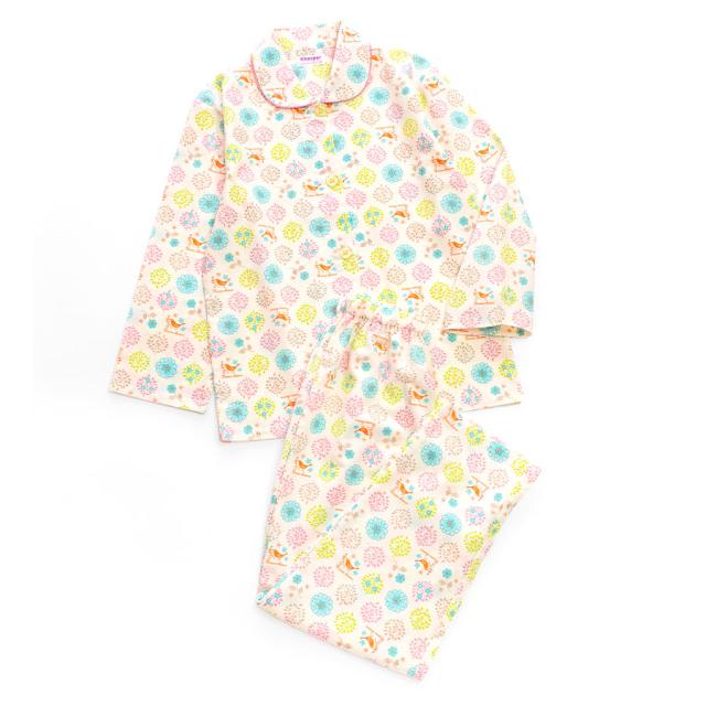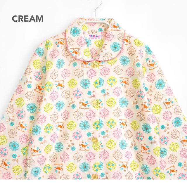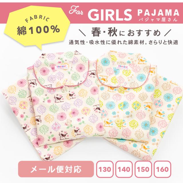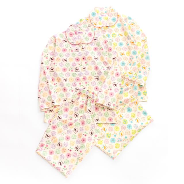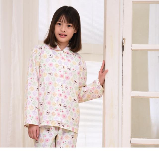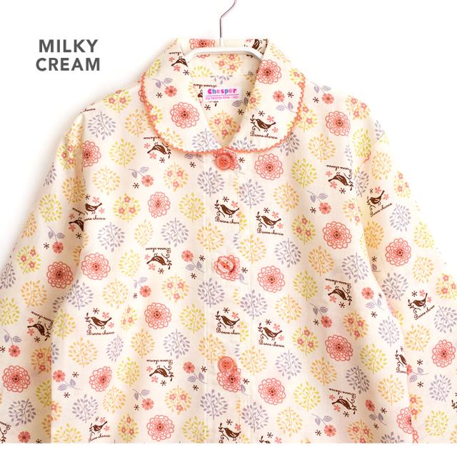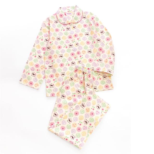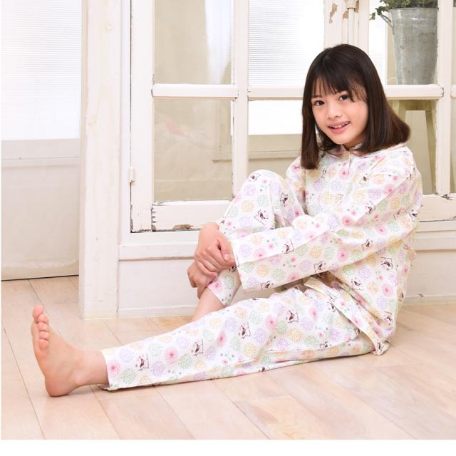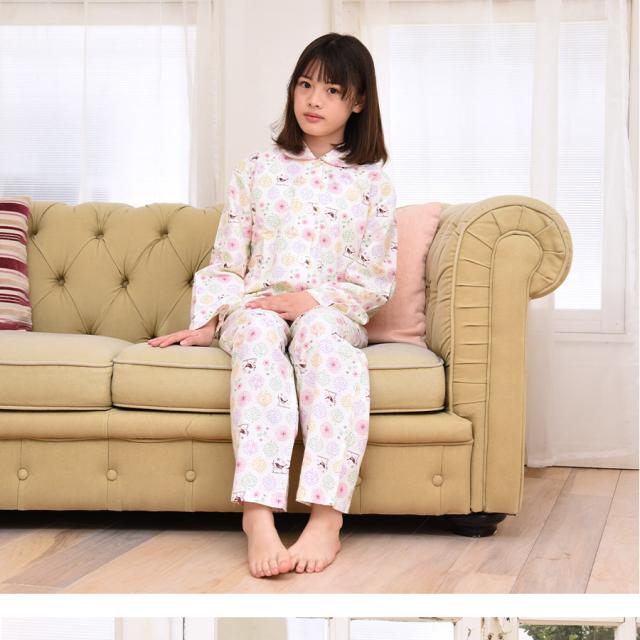 パジャマ キッズ 女の子 綿100% 長袖 春 秋 前開き ボタン 森ガール柄 ミルキーベージュ クリーム 100 110 120 130 140 150 160 子供 ジュニア ガールズ かわいい 親子 おそろい メール便なら 送料無料 86652