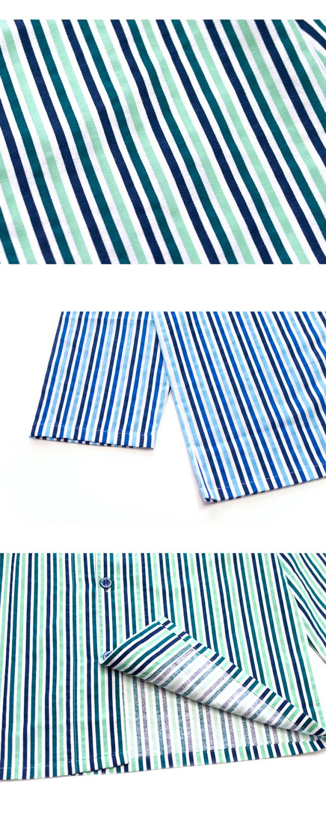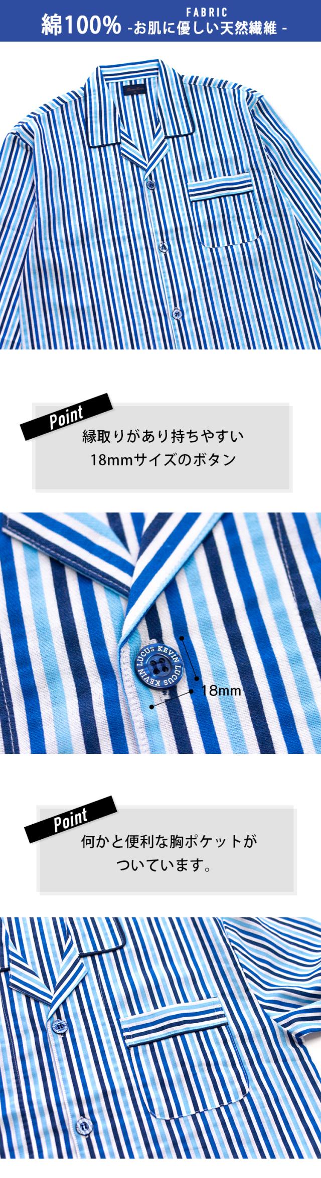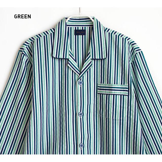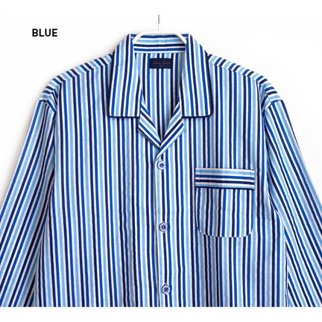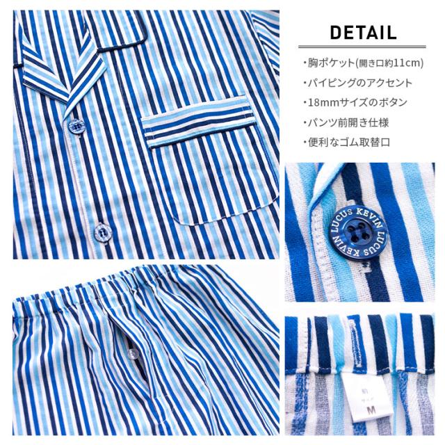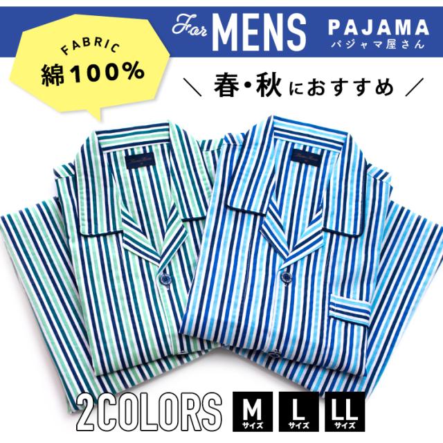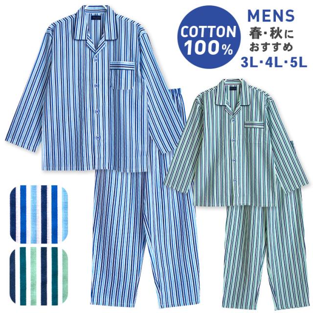 パジャマ メンズ 大きいサイズ 綿100% 長袖 春 秋 前開き ボタン ストライプ柄 ブルー グリーン 3L 4L 5L