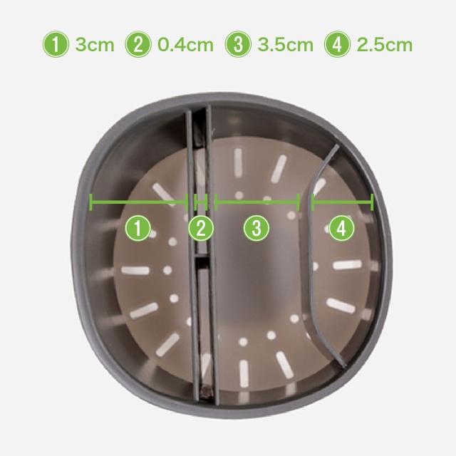 サイズが違う収納スペースが5箇所あるので、様々な種類のものを分けて収納できる。