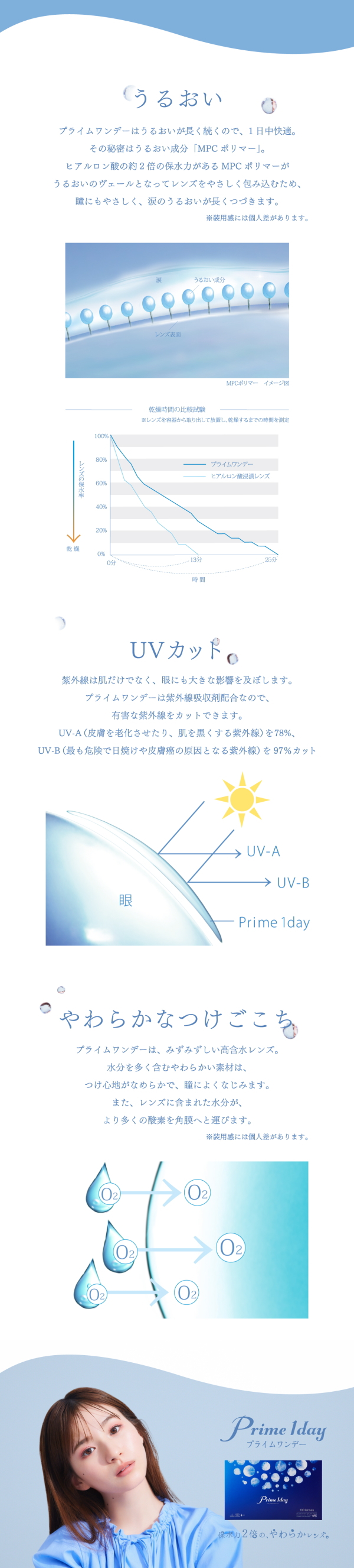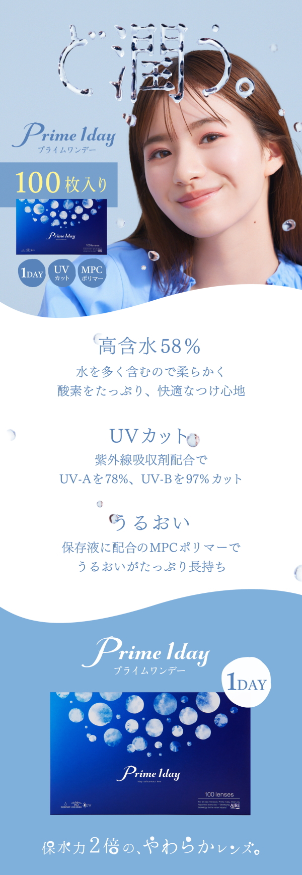 プライムワンデー ボリュームパック 1箱 (100枚入) 1日使い捨て ポスト便 送料無料 小松菜奈 ワンデーアキュビュー と同じ高含水