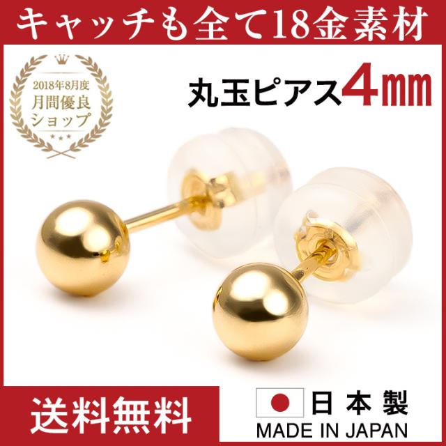 ピアス レディース 18金 K18 丸玉 日本製 メンズ 金属アレルギー 丸玉ピアス 4mm 18K YG イエロー ゴールド セカンドピアス ファーストピアス アレルギー対応 シンプル 両耳 ボールピアス スタッド ジュエリー アクセサリー 送料無料 誕生日 クリスマス プレゼント 女性