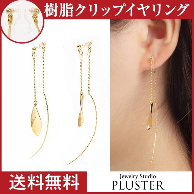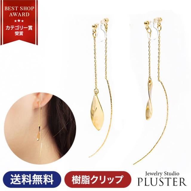 イヤリング レディース 金属アレルギー 大ぶり リーフ ロング ゴールド アレルギー 樹脂 クリップ ニッケルフリー アレルギー対応 痛くない ノンホール アメリカン フープ 揺れる 両耳 シンプル 18K アクセサリー 送料無料 誕生日 クリスマス プレゼント 女性 アクセサリー
